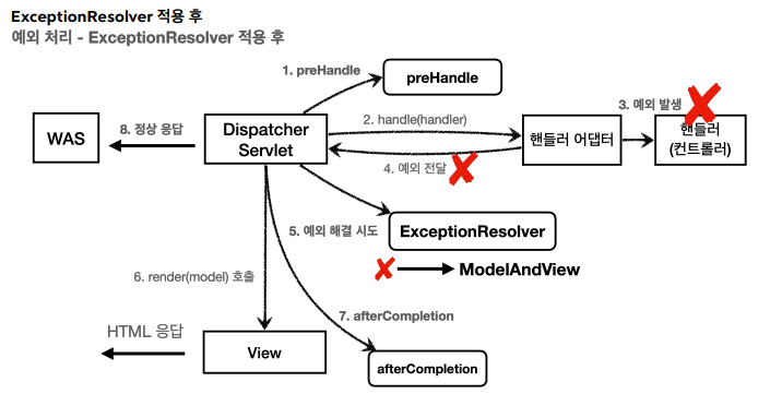참고 : ExceptionResolver로 예외를 해결해도 postHandle()은 호출되지 않는다.