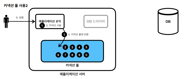 - 커넥션 풀에 커넥션을 요청하면 커넥션 풀은 자신이 가지고 있는 커넥션 중에 하나를 반환한다.