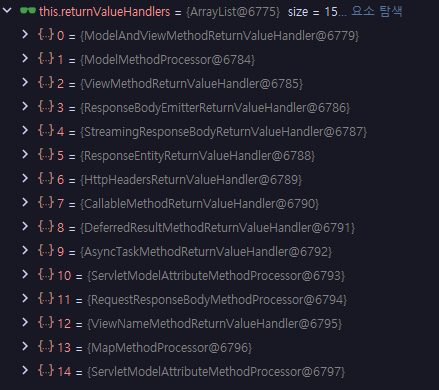 returnValueHandlers에는 15개의 핸들러가 있습니다.