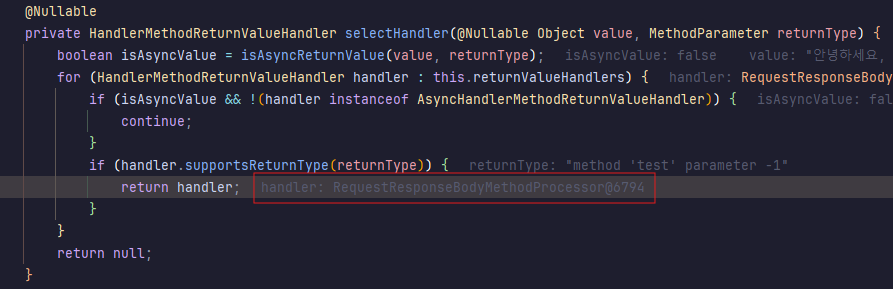 private HandlerMethodReturnValueHandler selectHandler(@Nullable Object value, MethodParameter returnType) {