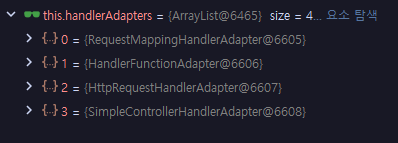 - 2번에서 찾은 Handler을 수행할 수 있는 HandlerAdapter를 찾습니다.