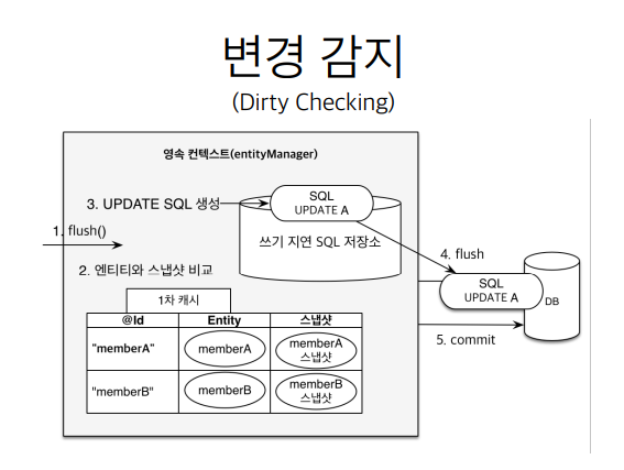 flush : 영속성 컨텍스트의 변경 내용을 데이터 베이스에 반영