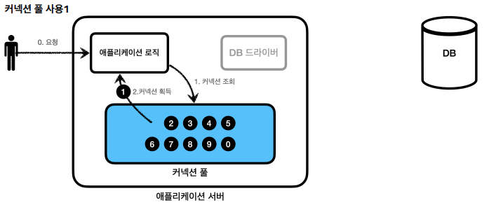 - 커넥션 풀에 커넥션을 요청하면 커넥션 풀은 자신이 가지고 있는 커넥션 중에 하나를 반환한다.