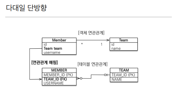 - 객체와 테이블의 차이 때문에 반대편 테이블의 외래 키를 관리하는 특이한 구조